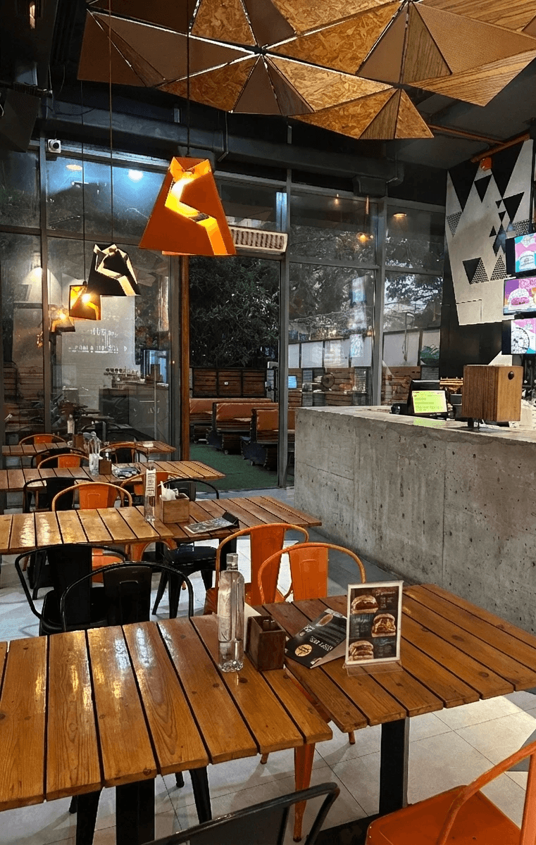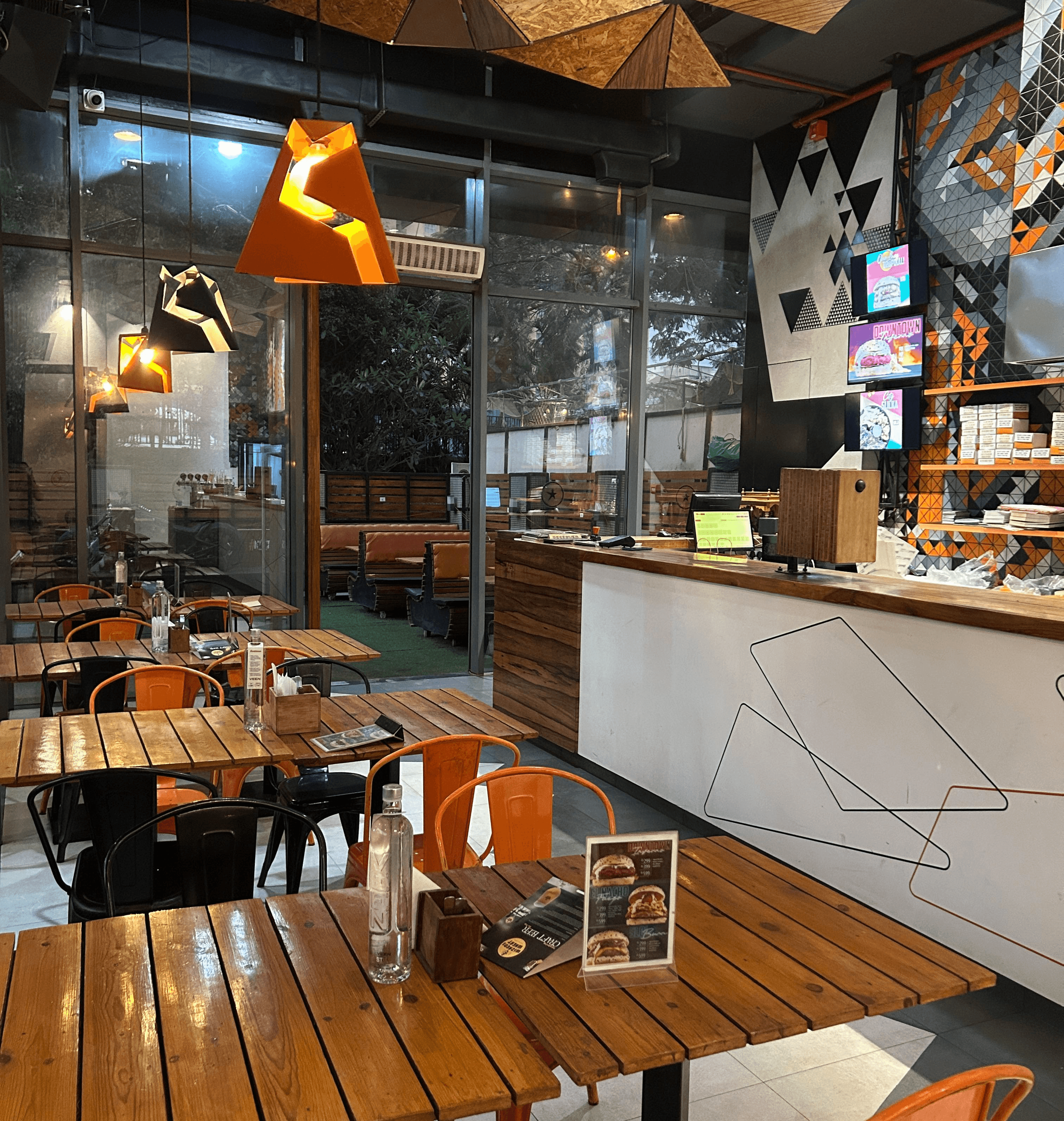RocoMamas is designed as a bold, urban restaurant with an edgy industrial aesthetic. The vibrant interiors reflect the brand’s playful spirit, making it a hub for casual, social dining.